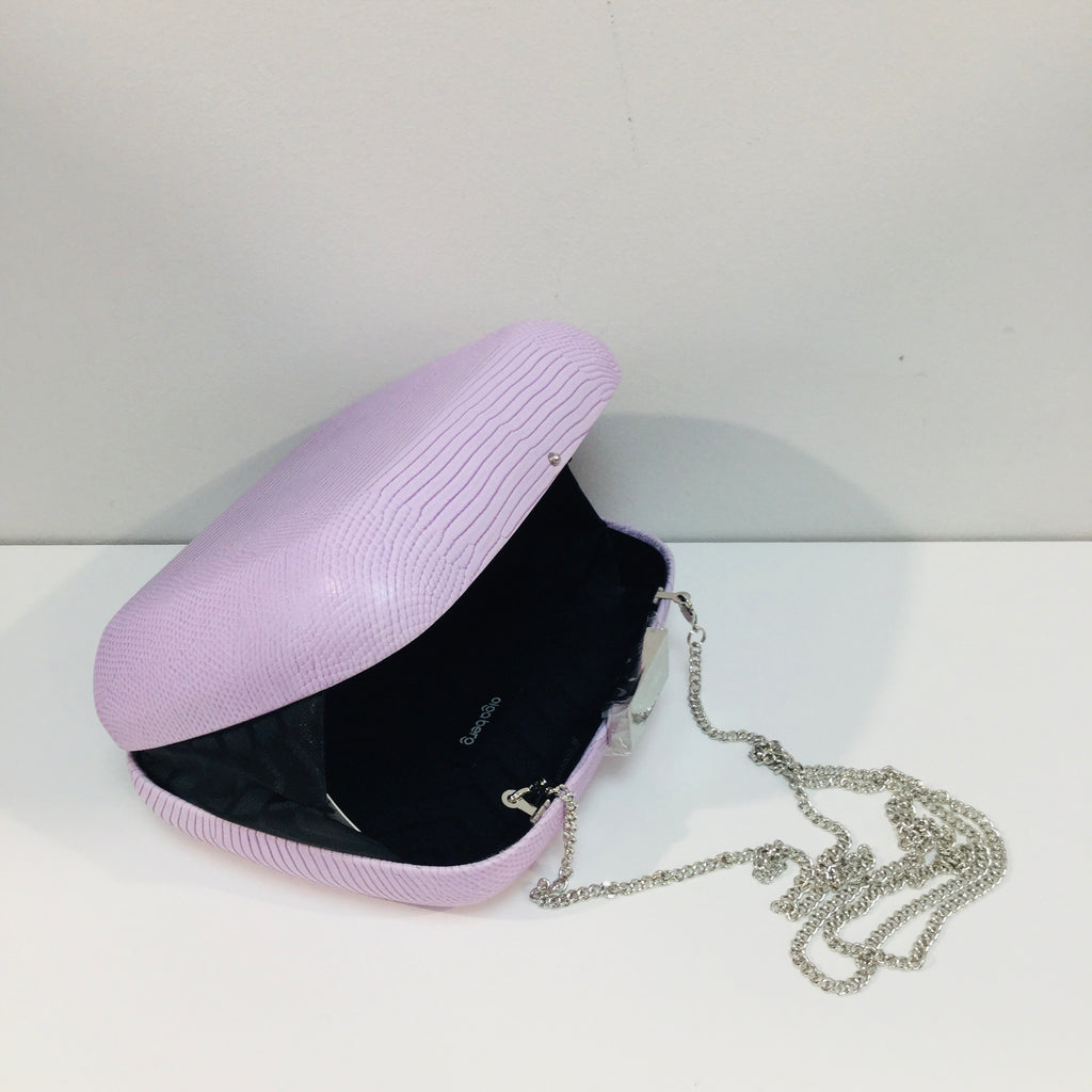 Engage your animal instincts with this Reptile Clutch by your side. Featuring a colourful reptile embossed vegan leather exterior, boasting a stunning sheen that reflects the light and emphasises the beautiful embossed texture. With its curved shape you'll be able to fit all of your evening essentials in its roomy interior, including your smart phone and its removable shoulder chain.