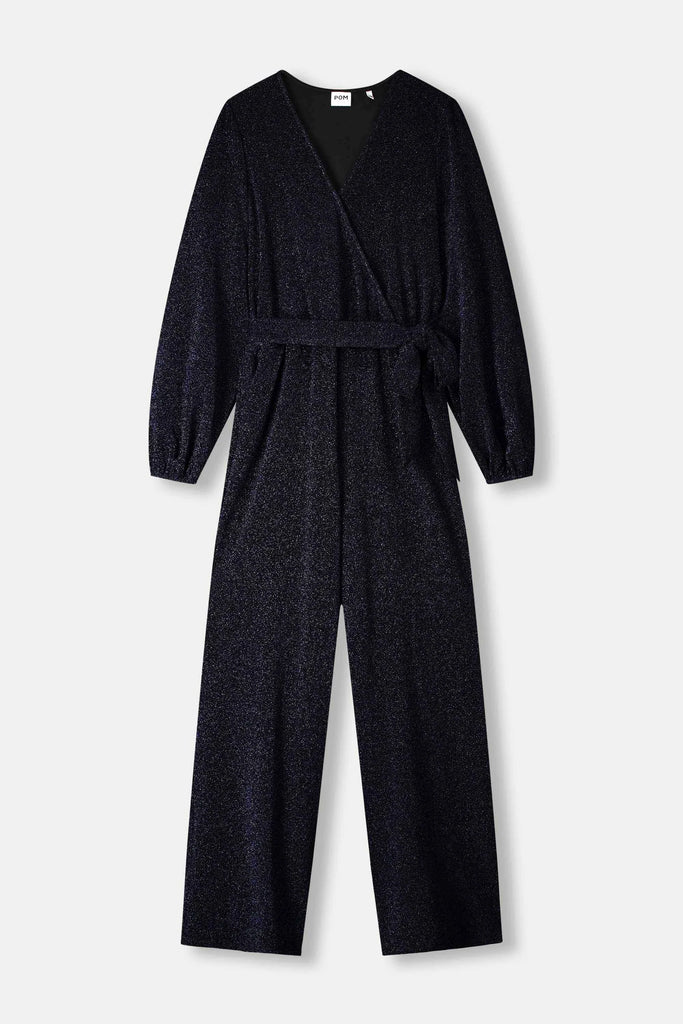 The wrap top, elasticated waist, and straight legs create a flattering silhouette. Wear it with heels for a festive evening or sneakers for a relaxed look with a sparkly twist.