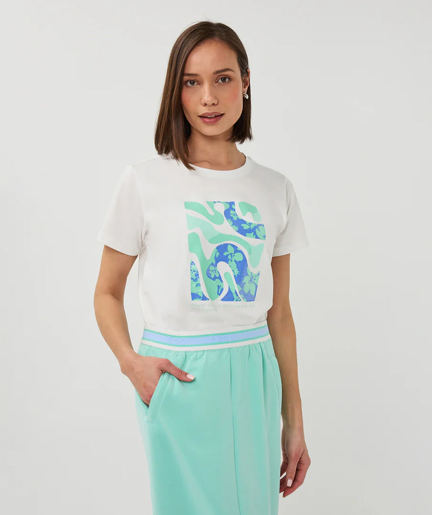 This casual essential features an eye-catching graphic on the front that captures contemporary edge and artistic flair. The mint hue provides a confident backdrop for the striking design, making it an instant wardrobe favourite. Perfect for layering or wearing solo