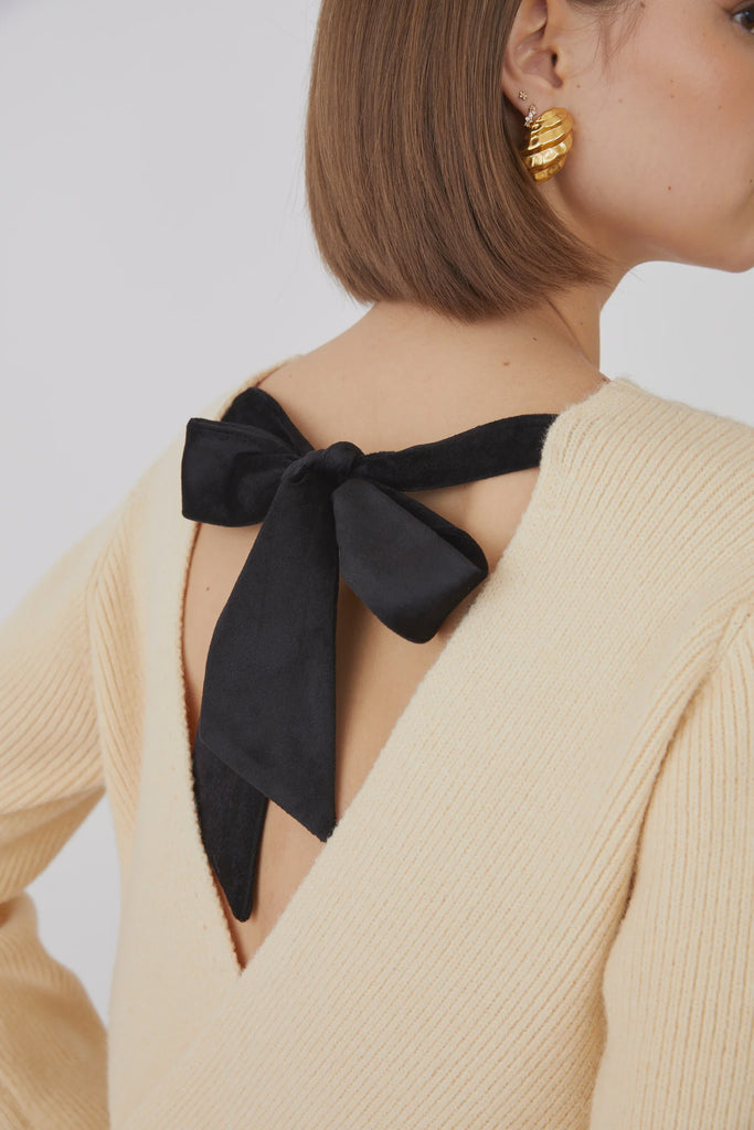 Elevate your essentials with the Macrame Jumper in cream, crafted for effortless style and comfort. Featuring a delicate tie at the back, it adds a refined touch to a classic silhouette. The super soft fabric ensures all-day wearability, making this jumper a versatile and sophisticated staple in your wardrobe.