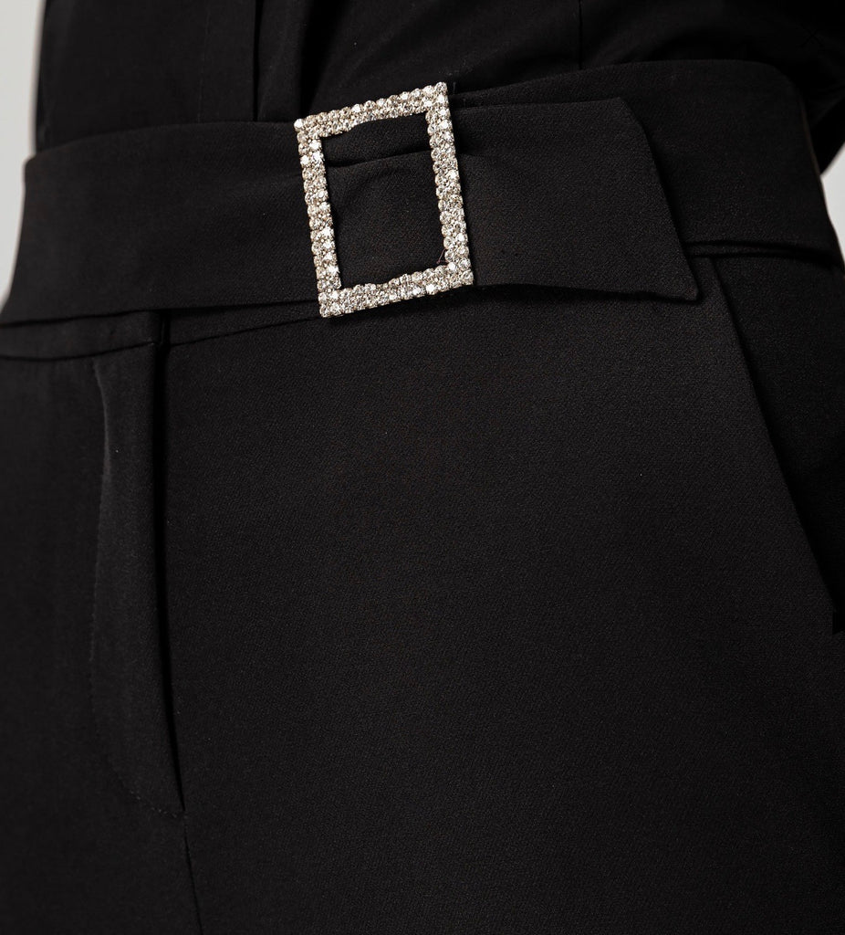 Belt has a jewel incrusted buckle, gorgeous with a top tucked inside.