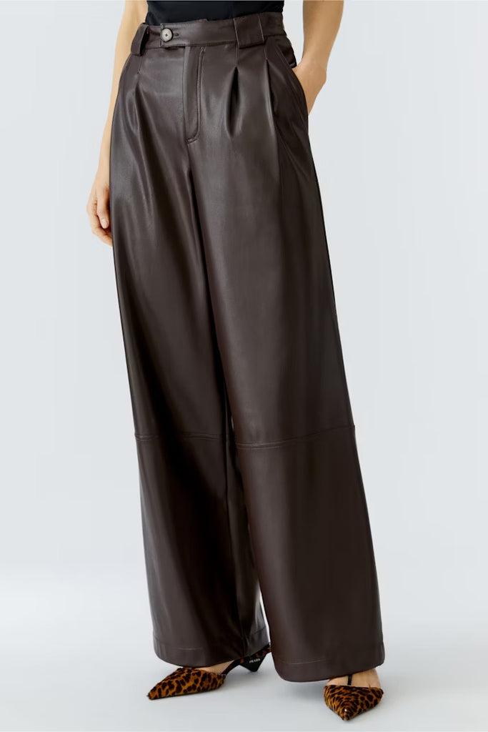 Wide pleated trousers in leather look - characteristic seams in the knee area, as found in genuine leather